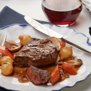 Beef fillet, pommes Anna, parsnip puree and sauce forestiere